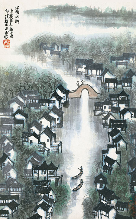 李可染先生(sheng)(sheng)所作的(de)(de)山水多以“墨(mo)色濃(nong)重(zhong)”著稱,而其(qi)六(liu)十(shi)年代后所做的(de)(de)“江南水鄉”系列則(ze)在力求筆(bi)墨(mo)痕跡之(zhi)余,給予人(ren)清新生(sheng)(sheng)動的(de)(de)淋漓暢(chang)快(kuai)之(zhi)感(gan)。