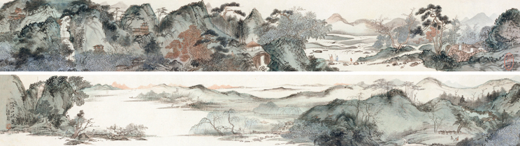 此卷(juan)雖有三(san)尺之(zhi)(zhi)(zhi)長,而高(gao)未至三(san)寸之(zhi)(zhi)(zhi)數(shu),溪山承(cheng)轉(zhuan)(zhuan),咫尺天涯。其中既現北宗(zong)剛(gang)勁峭銳(rui)之(zhi)(zhi)(zhi)風,又含南宗(zong)溫潤清秀之(zhi)(zhi)(zhi)韻。全畫(hua)寫來結構嚴整,起承(cheng)轉(zhuan)(zhuan)合自然(ran)有序,無(wu)突(tu)兀冗繁之(zhi)(zhi)(zhi)弊,細意經營(ying)卻(que)褪斧鑿痕跡,小橋(qiao)流水,暮鼓催人,平遠高(gao)崗,通(tong)卷(juan)散透的曠澹之(zhi)(zhi)(zhi)象,即或(huo)為先(xian)生(sheng)歸隱之(zhi)(zhi)(zhi)心。