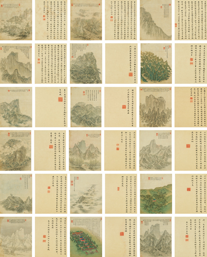 地理志是繪畫功能性中十分重要的一科。王雨公《華山圖》將明末清初華山萬狀之地理形態攬入筆底,描繪華岳三峰奇險峻偉的景色,所謂“揮毫潑墨極山水之變態者千秋之雨公也。”王雨公,明末清初人。康熙三年(1644)作《華山圖》24幀,又別為8幀。所畫有華山的山峰、草樹、水石、路徑、棧道、殿閣。王弘撰的《題王雨公華山圖》(《砥齋集》卷二)作了如下中肯評述:華山古無圖,有之,自王安道始。王世貞稱其得馬、夏風格。陸治云:“遂接宋人,不似勝國弱腕”,乃自為臨之,以意相甲乙。雖獲寓目,其致可想見。吾宗兄雨公,胸中富丘壑,于甲辰(1664)之夏,挾冊登絕頂,遍探諸峰之勝,處處志之。歸為圖二十四幀,又別為八幀。山巒草樹、水石徑棧,以及殿閣茅茨,無一不肖。而清逸秀潤,晻靄滃郁,橫看側看,遂使華山真面目歷歷楮墨間。其位置點皴,側有營丘、河陽遺法。不知視王(履)、陸(治)之筆得失如何?然以私度之,正恐有積薪之嘆耳! 其畫在清末光緒九年(1883)尚存,重刊道光本《華岳志》,楊昌標為該書重新繪制《華山圖》時,曾取而“規仿描摹”(《華岳圖小引》),惜今已散佚。