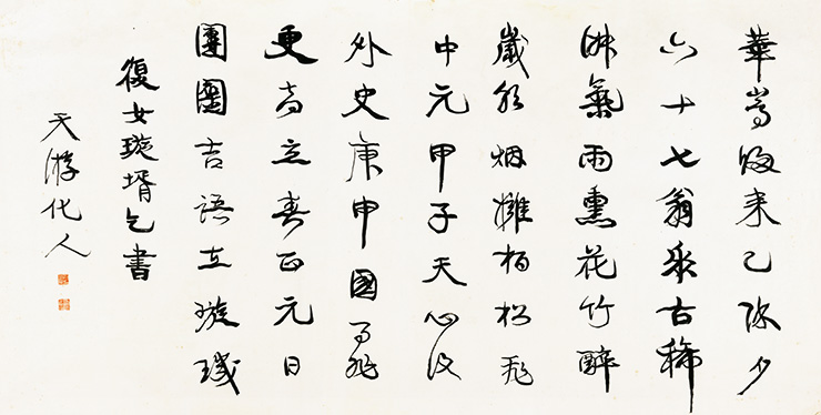 從此件書(shu)作觀之,也(ye)(ye)可體味到(dao)康(kang)(kang)氏畢生熱(re)衷于(yu)他《廣藝舟雙(shuang)揖》的藝術實踐氣息,對(dui)六朝碑(bei)版采粹咀(ju)英,并(bing)上窺(kui)篆隸(li)、近察諸家、俯仰(yang)書(shu)史,入古(gu)出(chu)新、反(fan)復改造,終于(yu)形成了(le)(le)縱橫奇宕(dang)、魄力雄強、氣象渾穆、精(jing)神飛(fei)動、點畫峻厚的”康(kang)(kang)休”行(xing)(xing)書(shu)。此軸其書(shu)風(feng)中(zhong),也(ye)(ye)難覓王、顏二家行(xing)(xing)書(shu)的影(ying)子(zi),全然是(shi)以(yi)(yi)魏碑(bei)書(shu)體為(wei)基調(diao)醞釀而(er)成,至此魏碑(bei)行(xing)(xing)書(shu)以(yi)(yi)全新的面(mian)貌卓立書(shu)壇,與王、顏形成了(le)(le)三大(da)行(xing)(xing)書(shu)體系。就此而(er)言,康(kang)(kang)有為(wei)的成功(gong),其意(yi)義已遠遠的超(chao)出(chu)其”康(kang)(kang)體”行(xing)(xing)書(shu)的藝術造詣和審美價(jia)值。