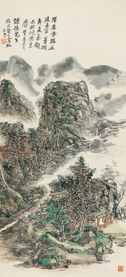款識:渾厚華滋,畫法正宗,蒼潤即是氣韻,而枯硬于柔靡皆為失之,謙德先生雅正,癸巳賓虹年九十。