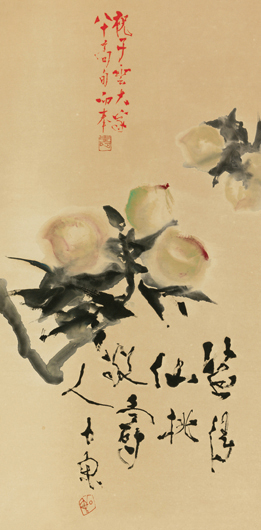 對(dui)王子云(yun)這位前輩,石魯的態度(du)也是(shi)不一樣,他(ta)對(dui)她非常(chang)尊敬。1976年,王子云(yun)過80歲生日,石魯的病情已很是(shi)嚴重了,但他(ta)還是(shi)抱病為他(ta)畫(hua)了一幅(fu)《壽桃》,還題(ti)上(shang)了“盜得仙桃敬壽人”的詩句(ju)以賀。